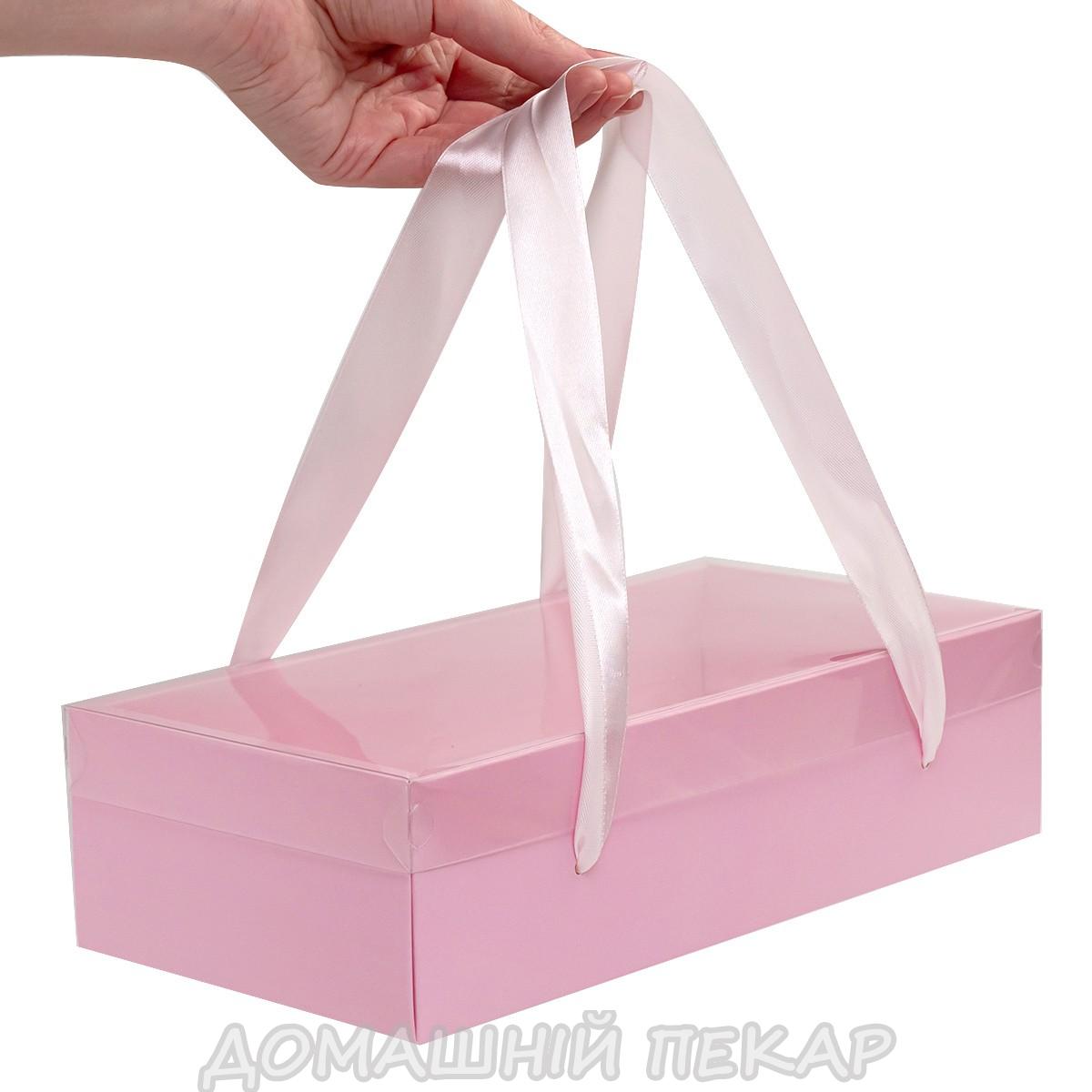 Коробка з ручками зі стрічки 27*13,5*7 см Рожева
