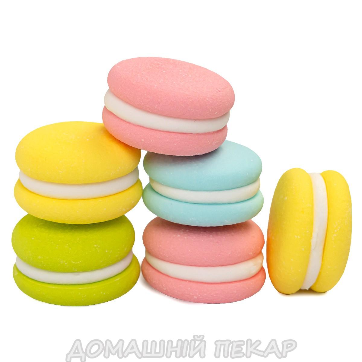 Склад: цукор, загущувачі (білок яєчний сухий, камідь гуару), регулятор кислотності Е330, ароматизатор «Суниця», барвники штучні: E102, E124, E133.