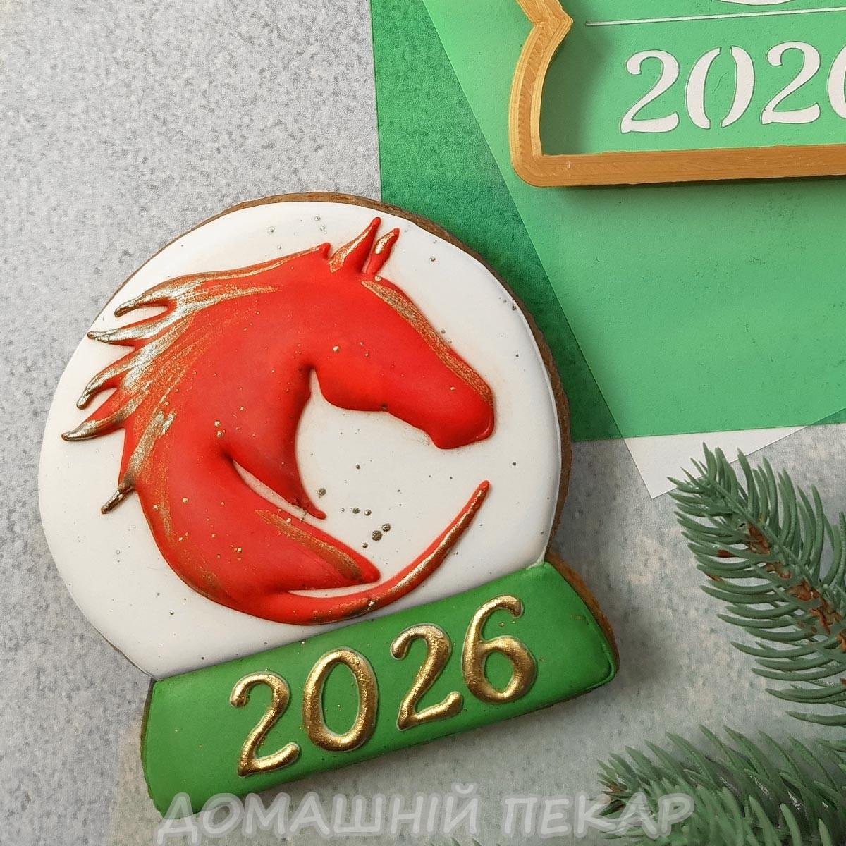 Конячка в сніжній кулі вирубка з трафаретом 10*9 см (TR-2)