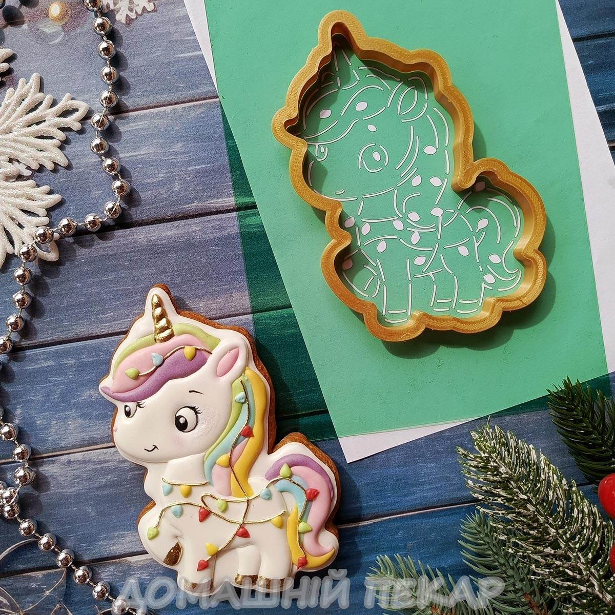 Єдиноріг новорічний вирубка з трафаретом 12*9,1 см (TR-2)