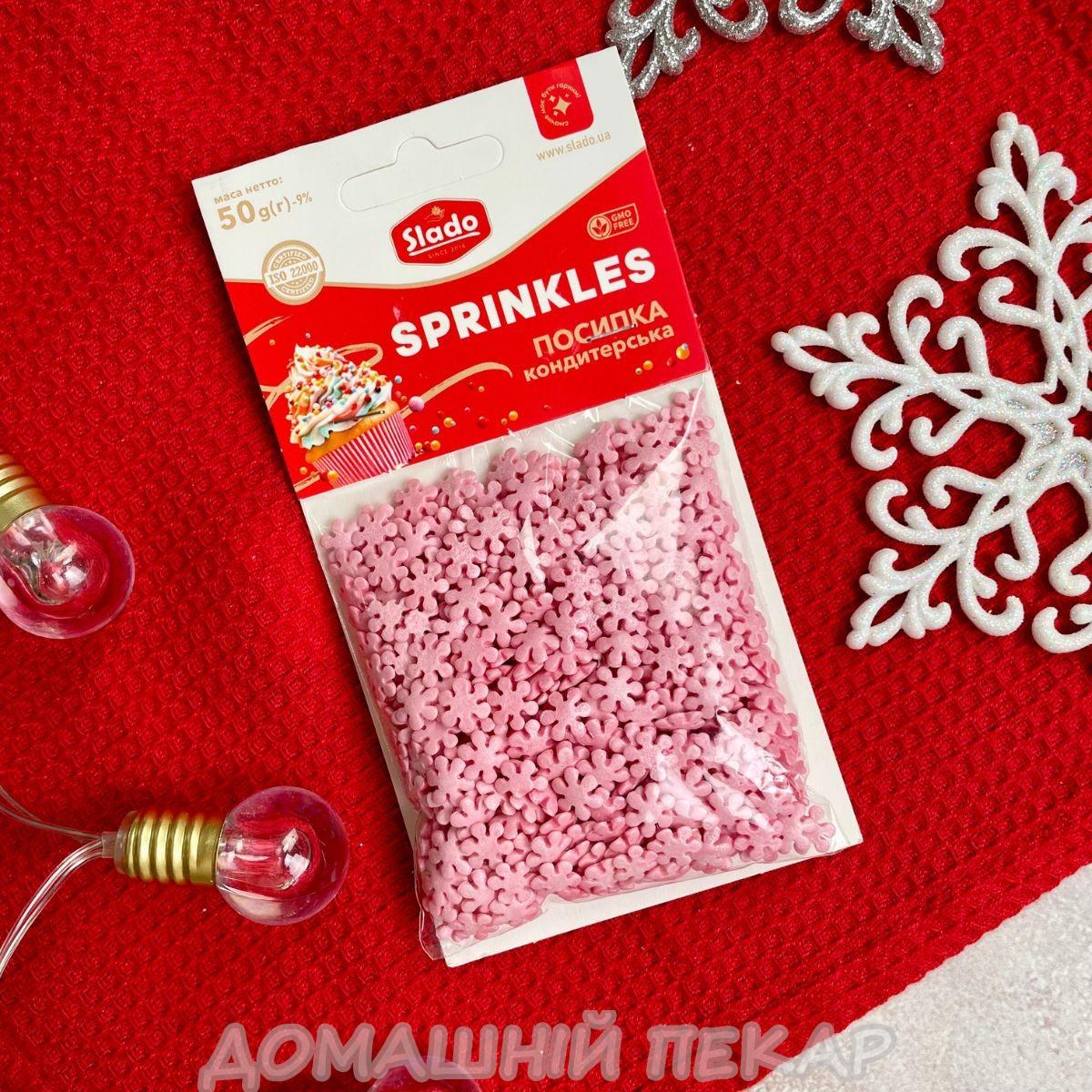 Кондитерська посипка Сніжинки рожеві перламутрові