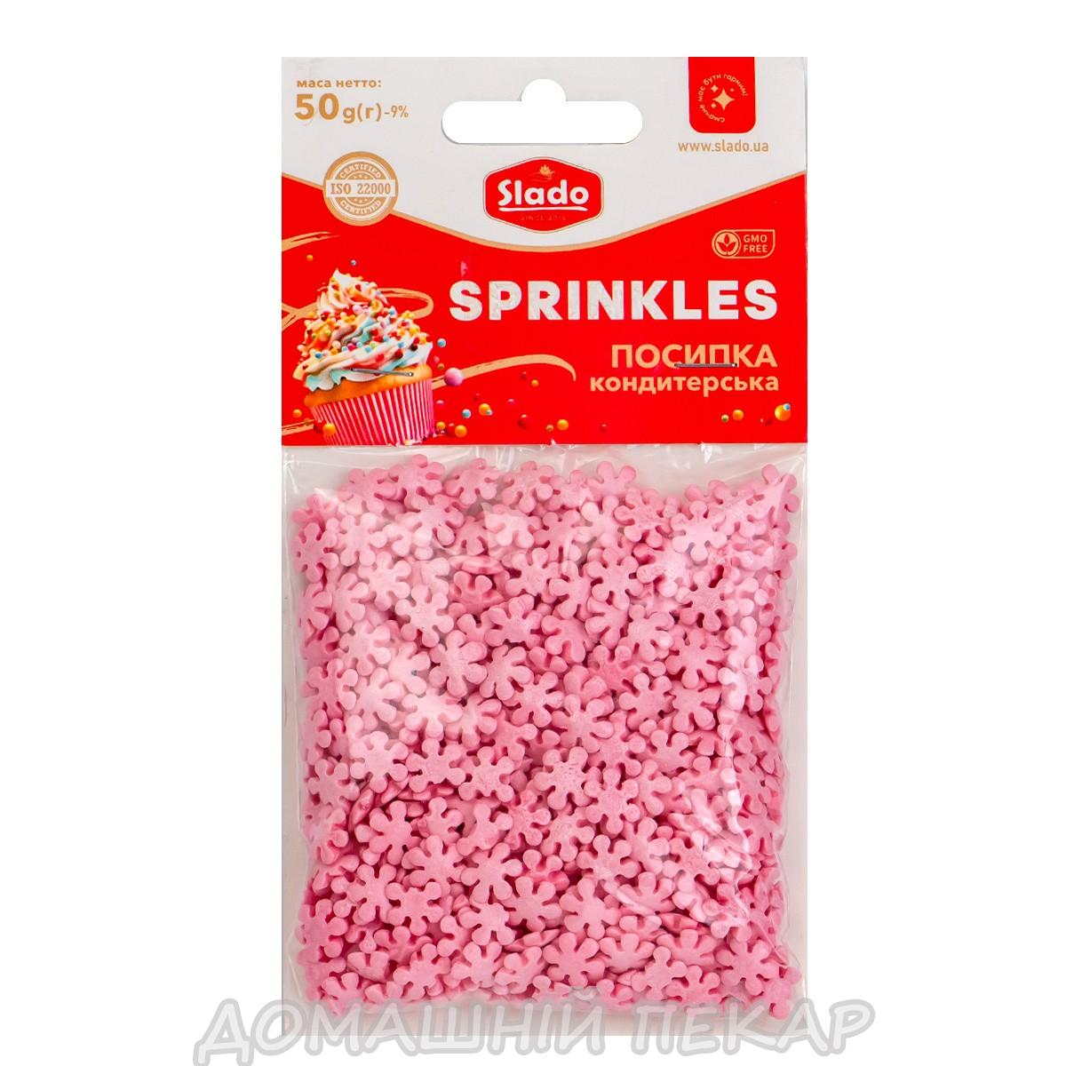 Посипка кондитерська Коктейль Сніжинки рожеві перламутрові, 50 г П925