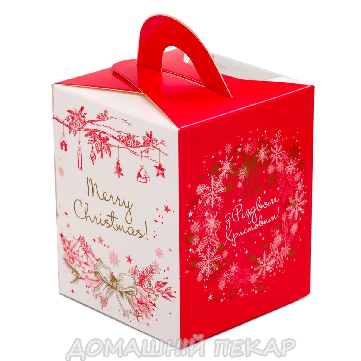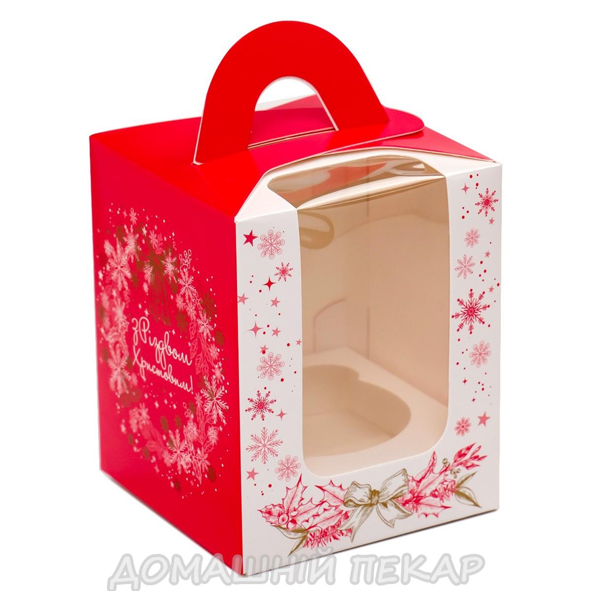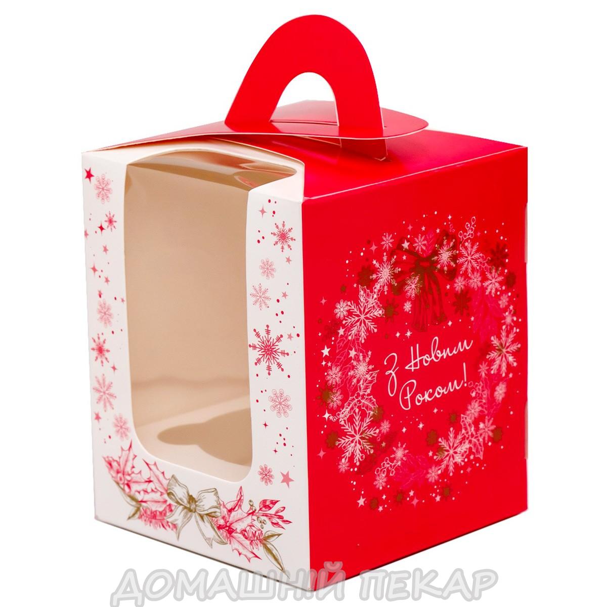 Упаковка для кексів з віконцем (на 1шт) з ручкою Новорічний віночок червоний