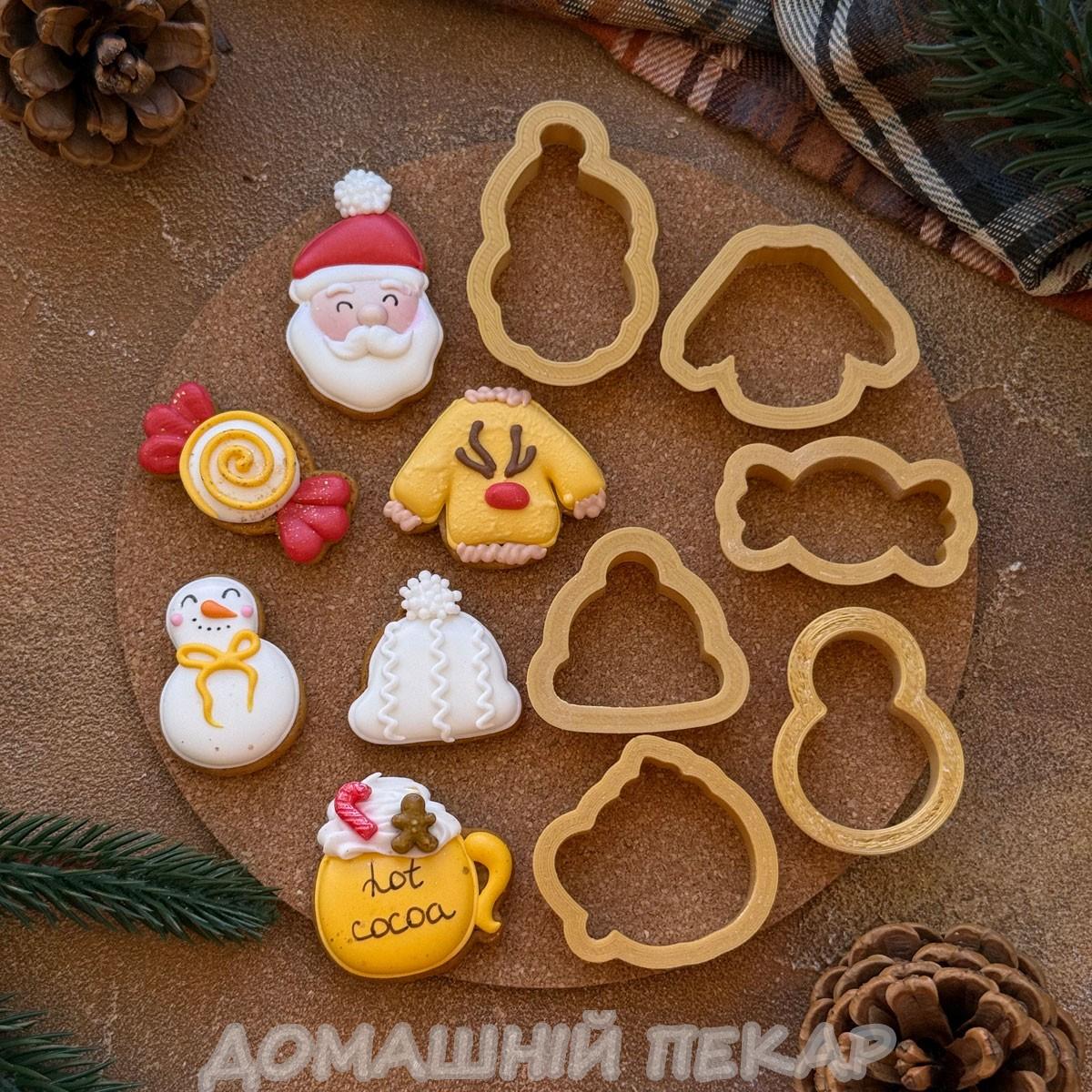 Новорічний міні 2 набір вирубок для пряників 4 см 6 шт (3D)
