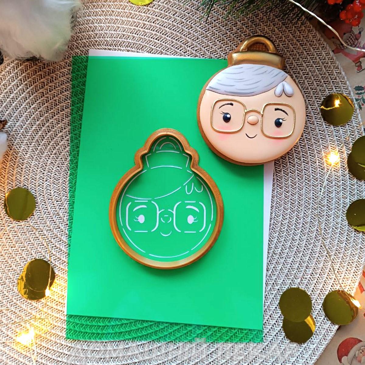 Куля на ялинку Бабуся вирубка з трафаретом 9*7,2 см (TR-2)
