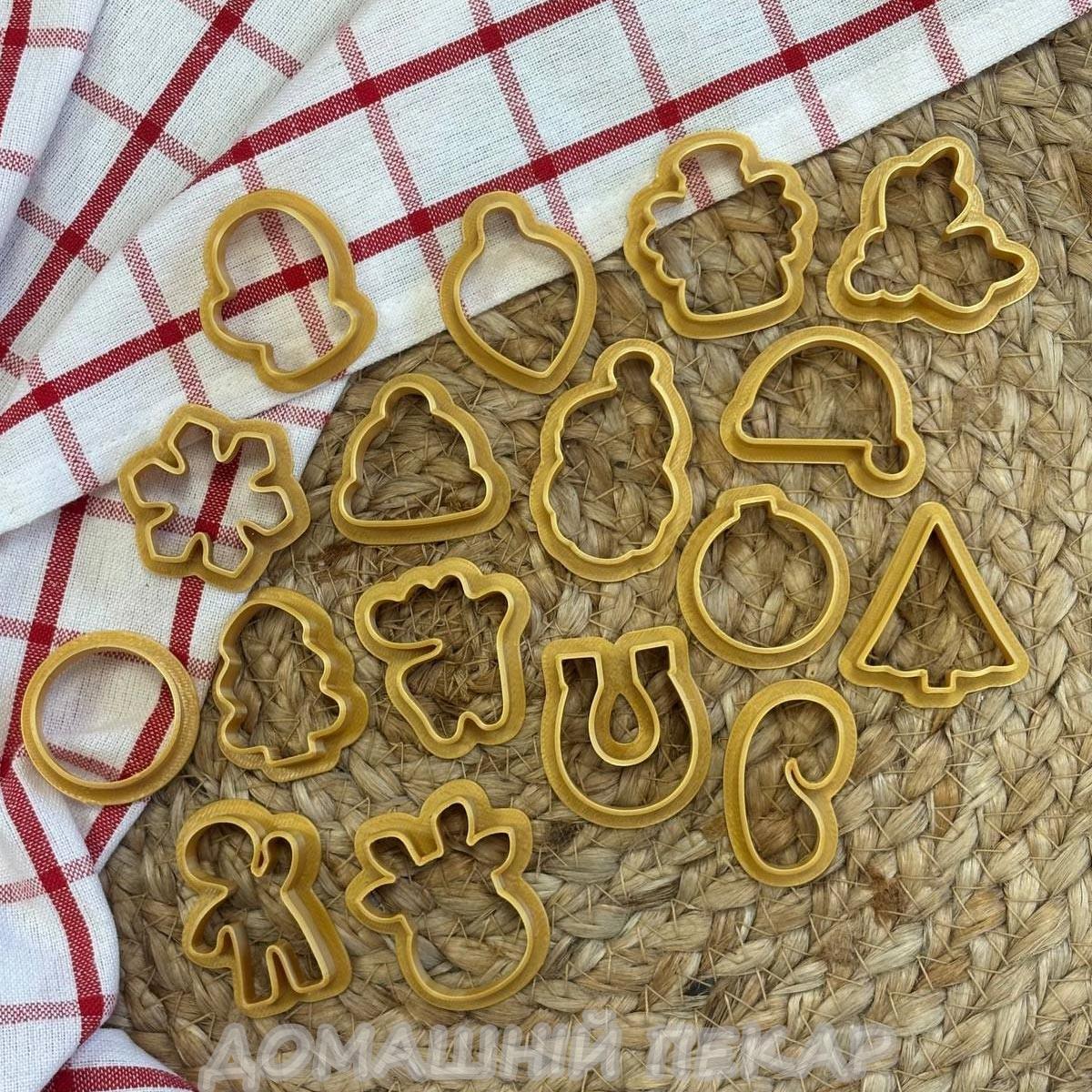 Новорічний 5 набір міні-вирубок для пряників з відбитком 3-4 см 9 шт (3D)