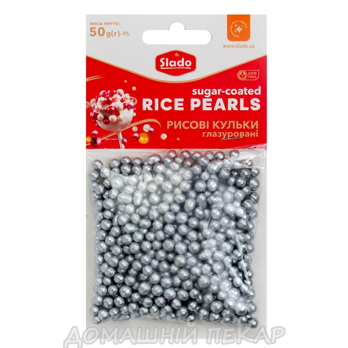 СЛАДО рисові кульки Срібло перламутрові 5 мм 50 г