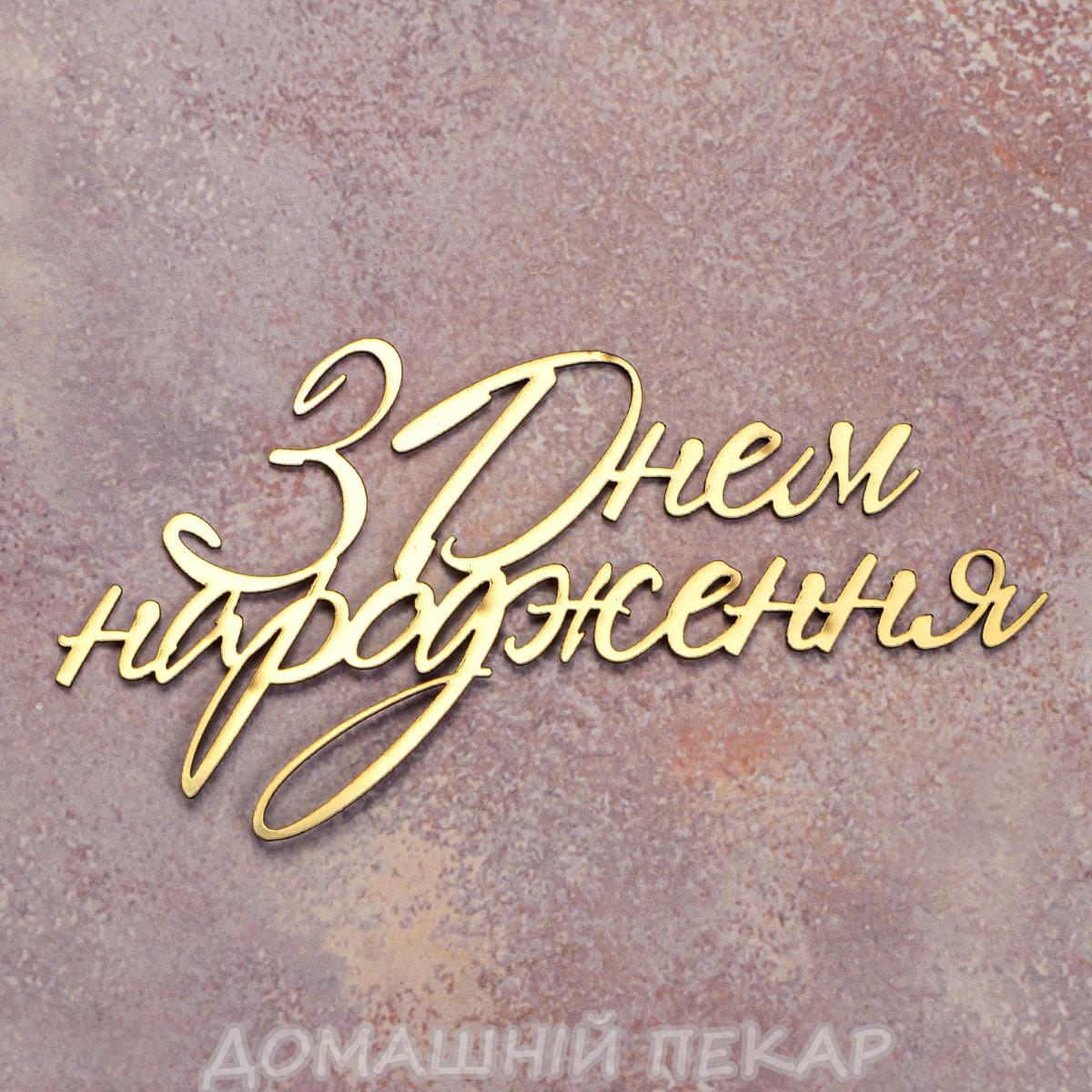 Топпер дзеркальний для торта бічний З Днем народження №2 золотий СЛАДО