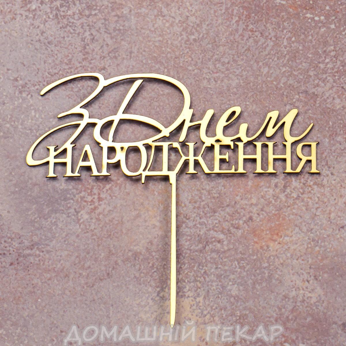 Топпер дзеркальний для торта З Днем народження золотий СЛАДО