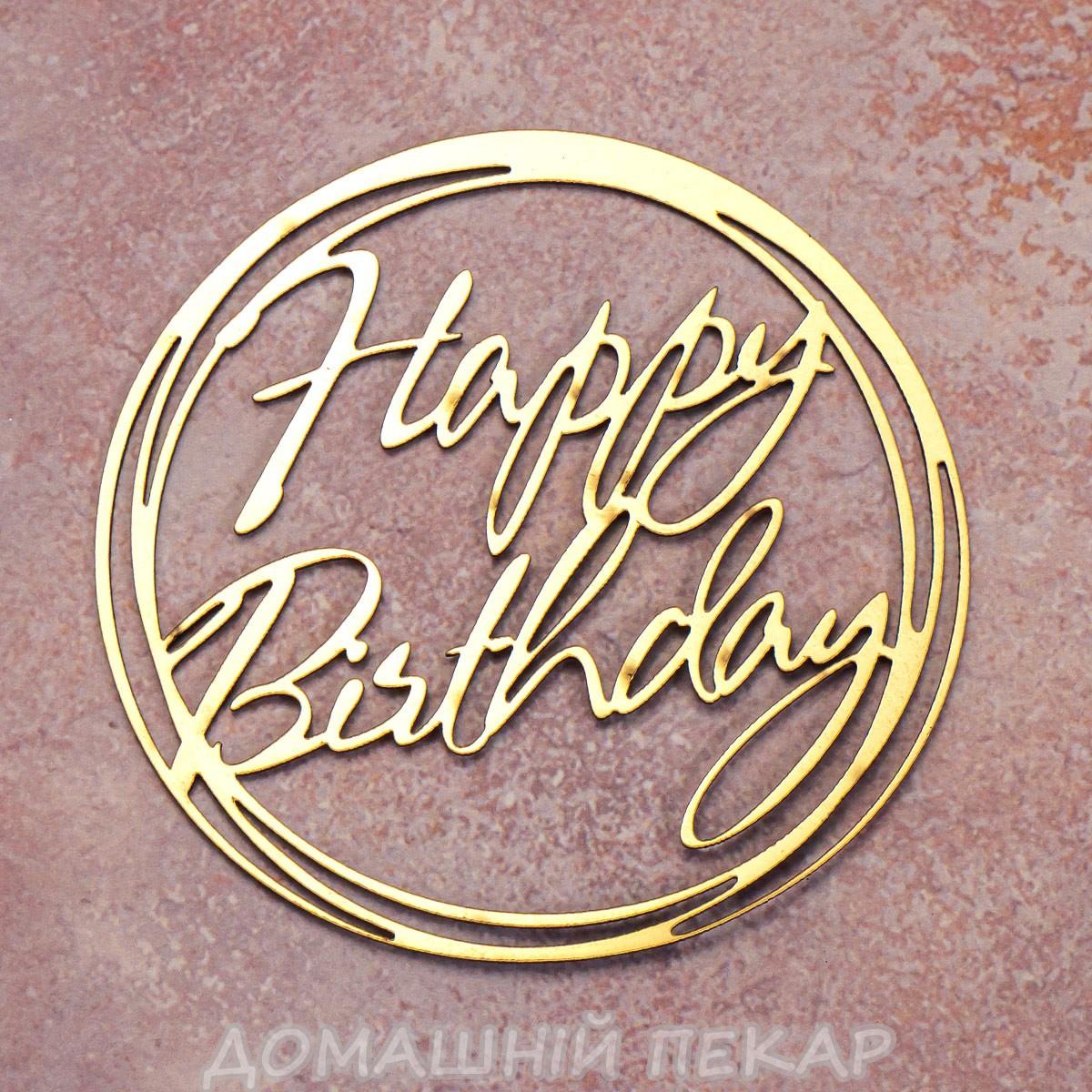 Топпер дзеркальний для торта бічний Happy Birthday №3 золотий СЛАДО