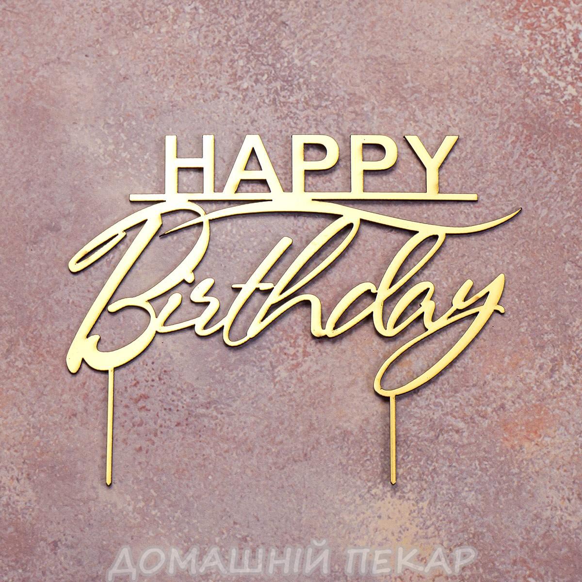 Топпер дзеркальний для торта Happy Birthday золото