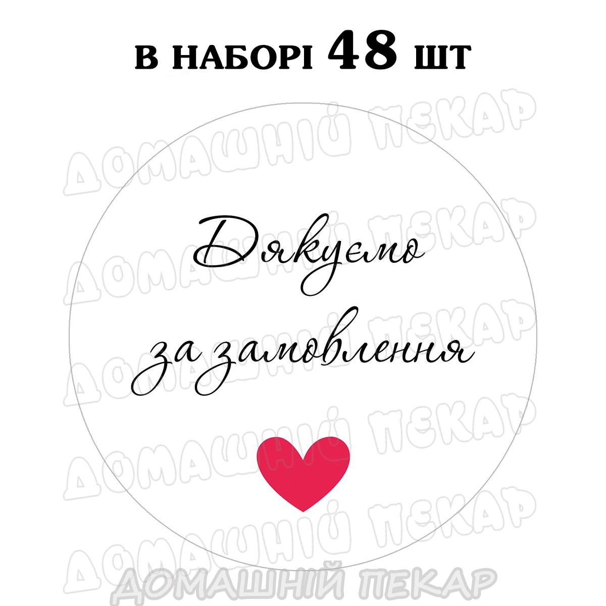 Наклейка Дякуємо за замовлення 3 см, аркуш 48 шт