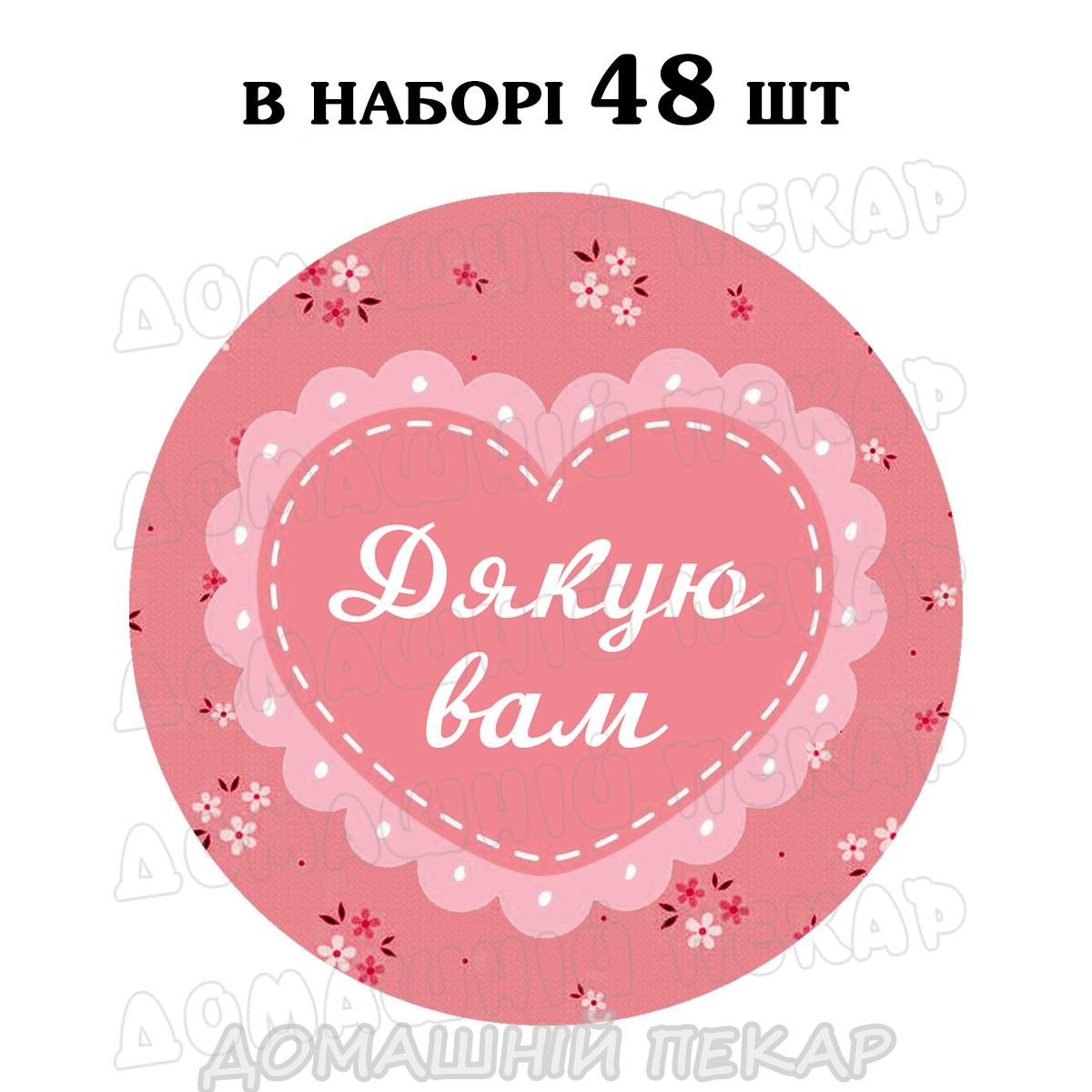 Наклейка Дякую вам сердечко 3 см, аркуш 48 шт (N)