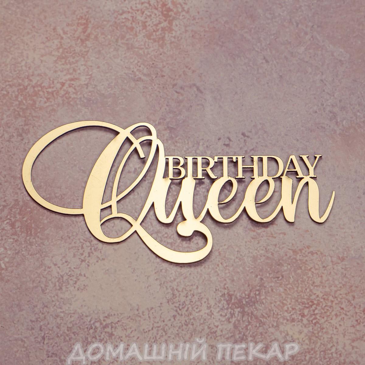 Топпер дзеркальний для торта бічний Birthday Queen золотий СЛАДО