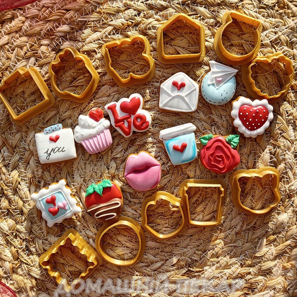 Валентинки 1 набір міні-вирубок для пряників 3-4 см 8 шт (3D)