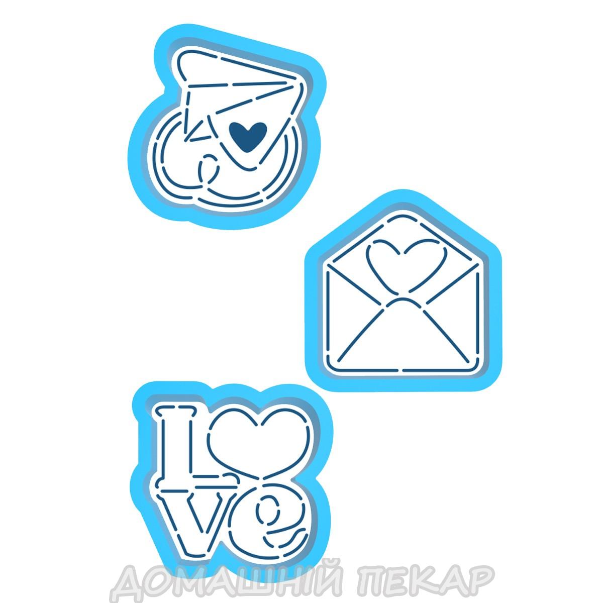 День закоханих 3 набір із 5 вирубок з трафаретом 4,8 см (TR-2)