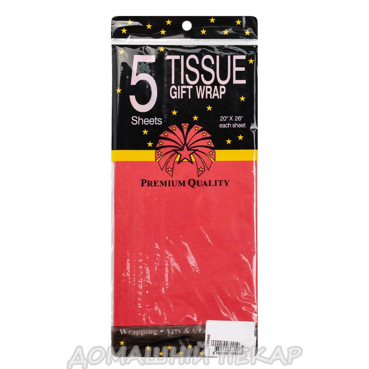 Папір тишью Червоний 50*66 см 5 аркушів