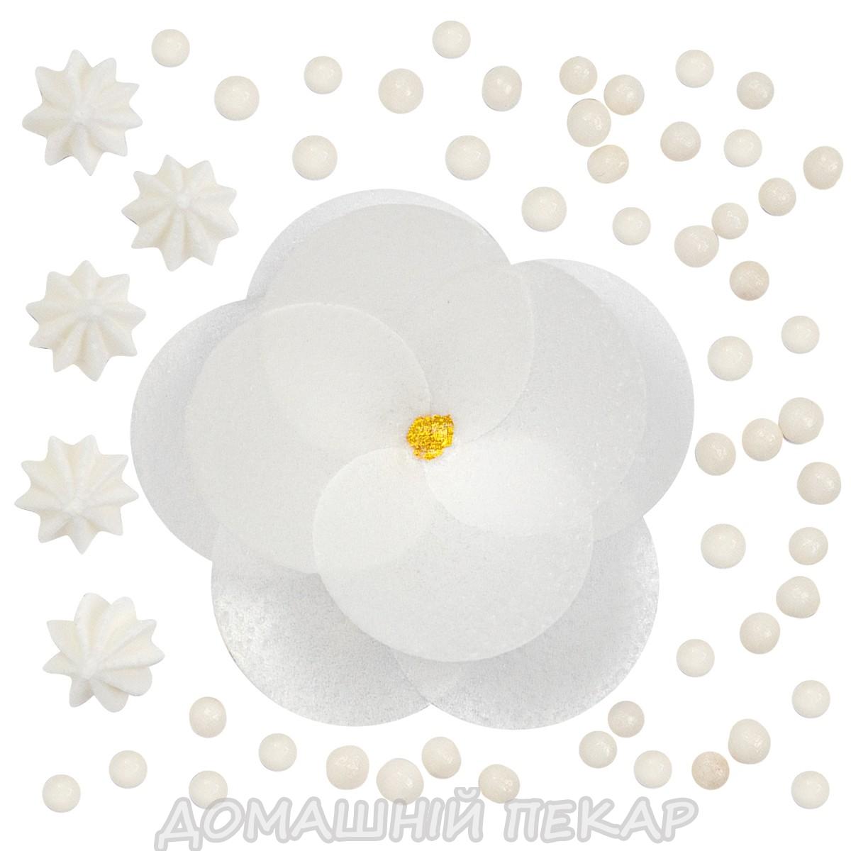 - В наборі: квітка камелії, мікро-безе білі, посипка біла
