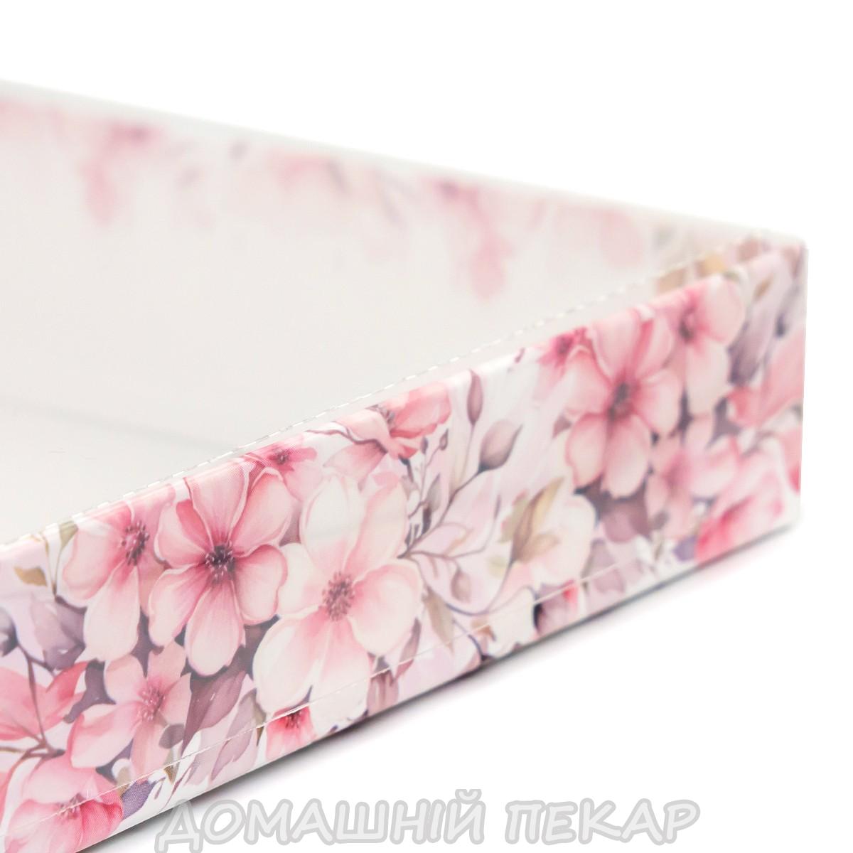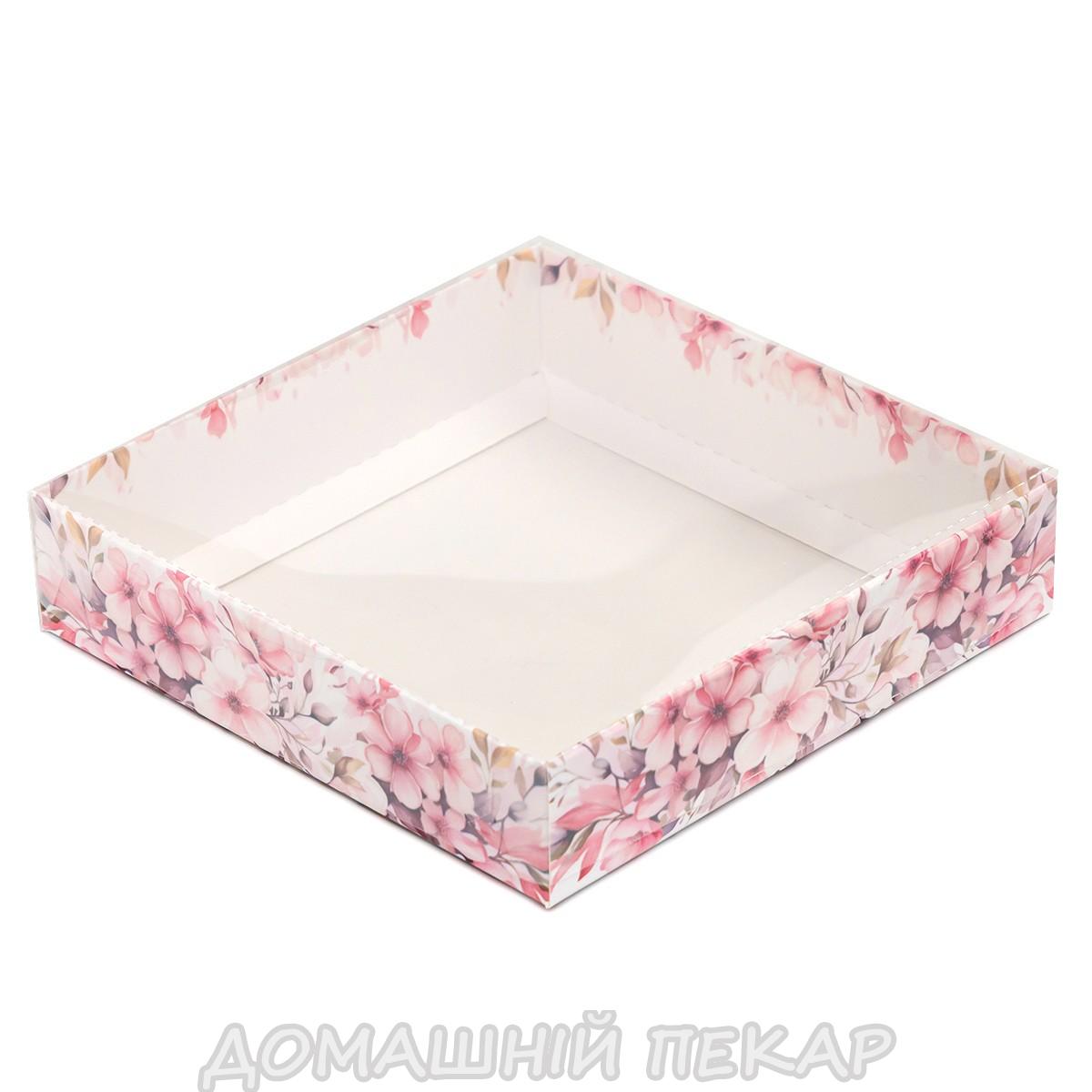 Упаковка для пряників з прозорою кришкою 160*160*35мм Рожеві квіти ВТП