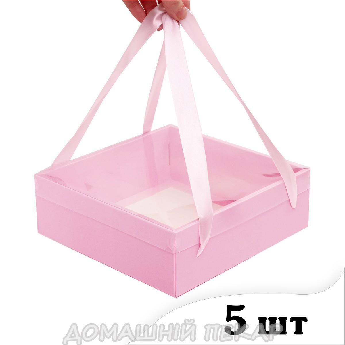 5 шт Коробка з ручками зі стрічки 21*21*7 см Рожева