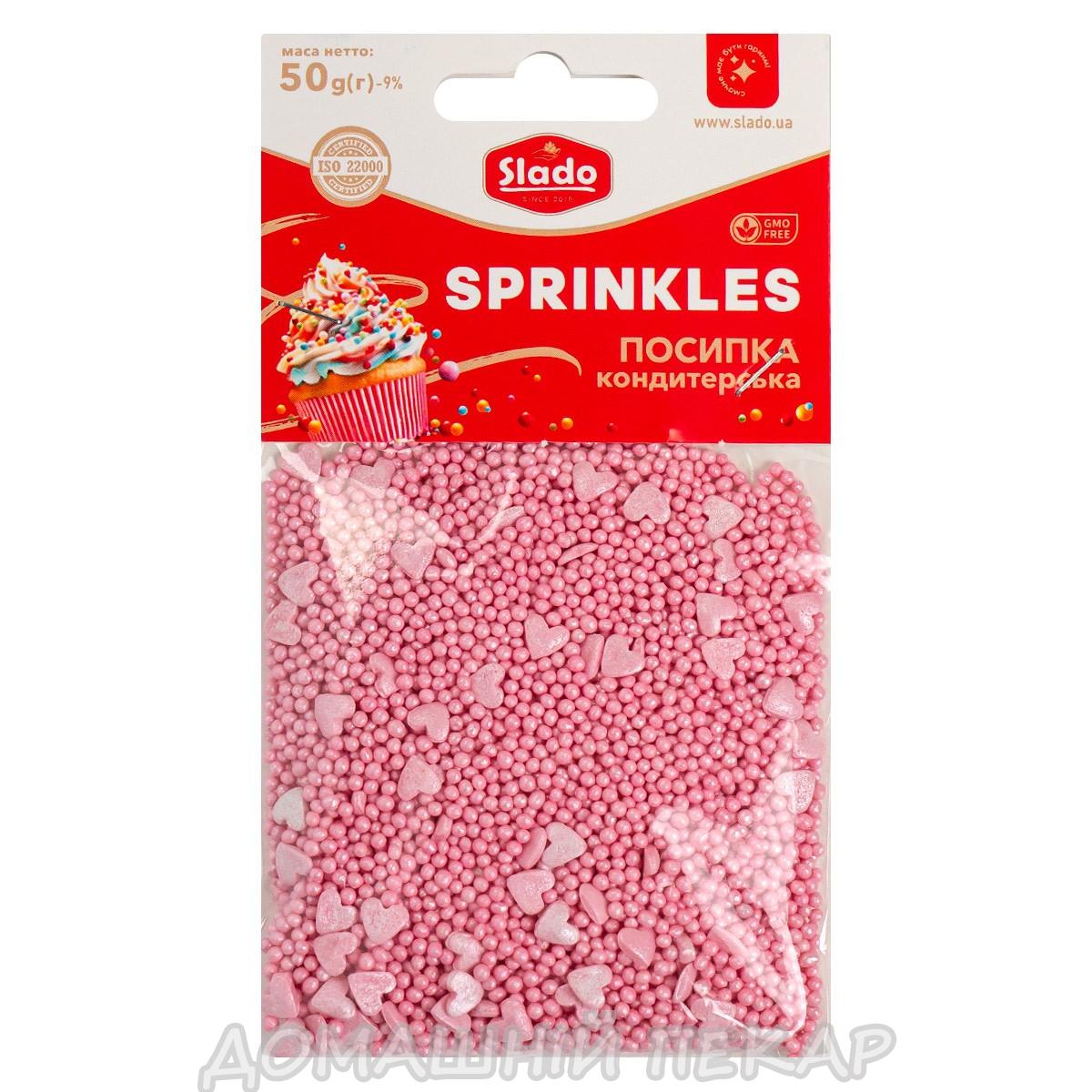Посипка кондитерська Коктейль Серце перламутрове, 50 г П908