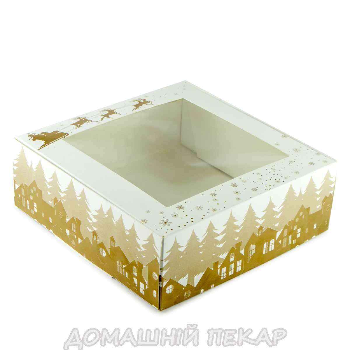 Упаковка для зефіру з вікном Новорічний Олень 200*200*70 мм