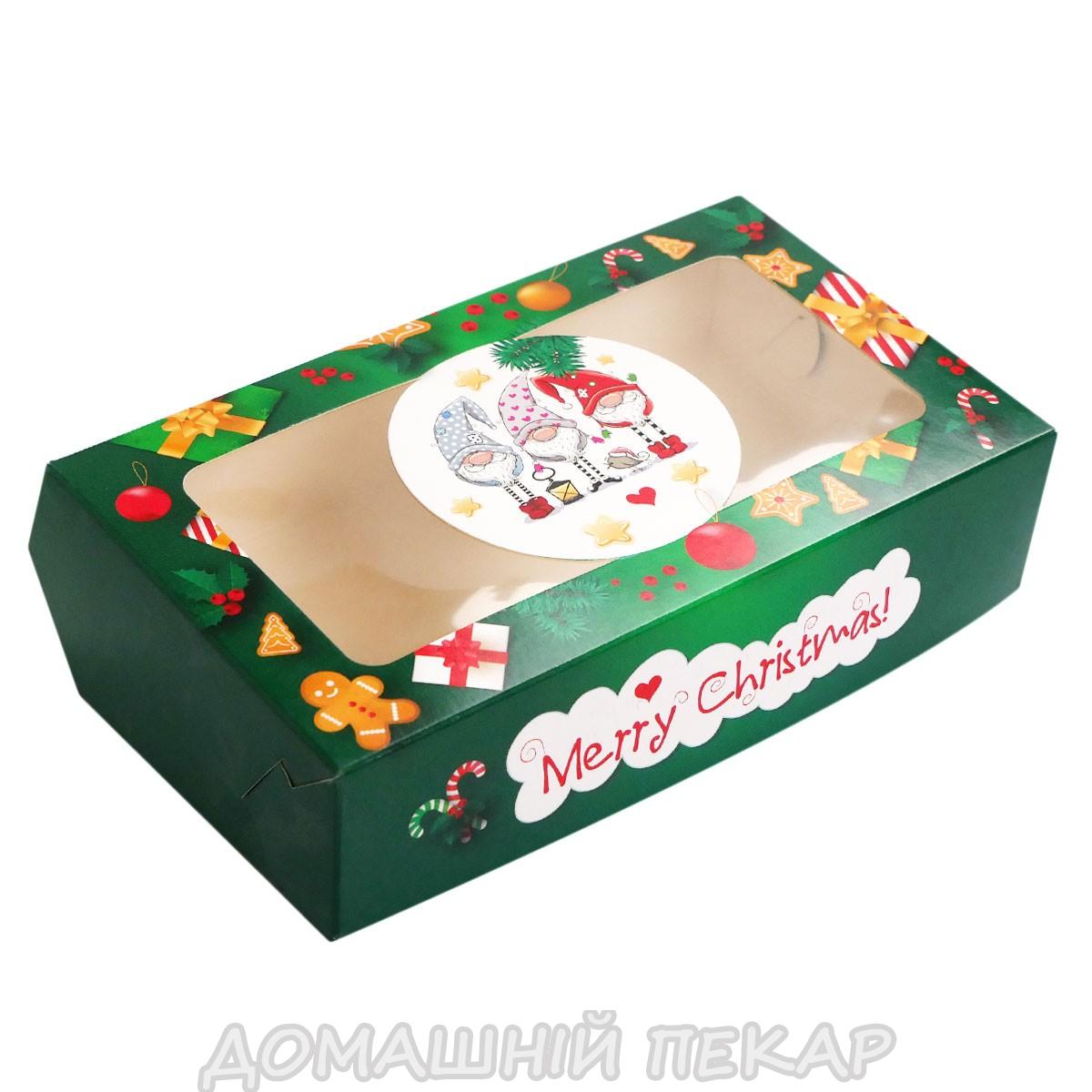 Упаковка для еклерів і зефіру (коло) 200*115*50мм Гноми зелена
