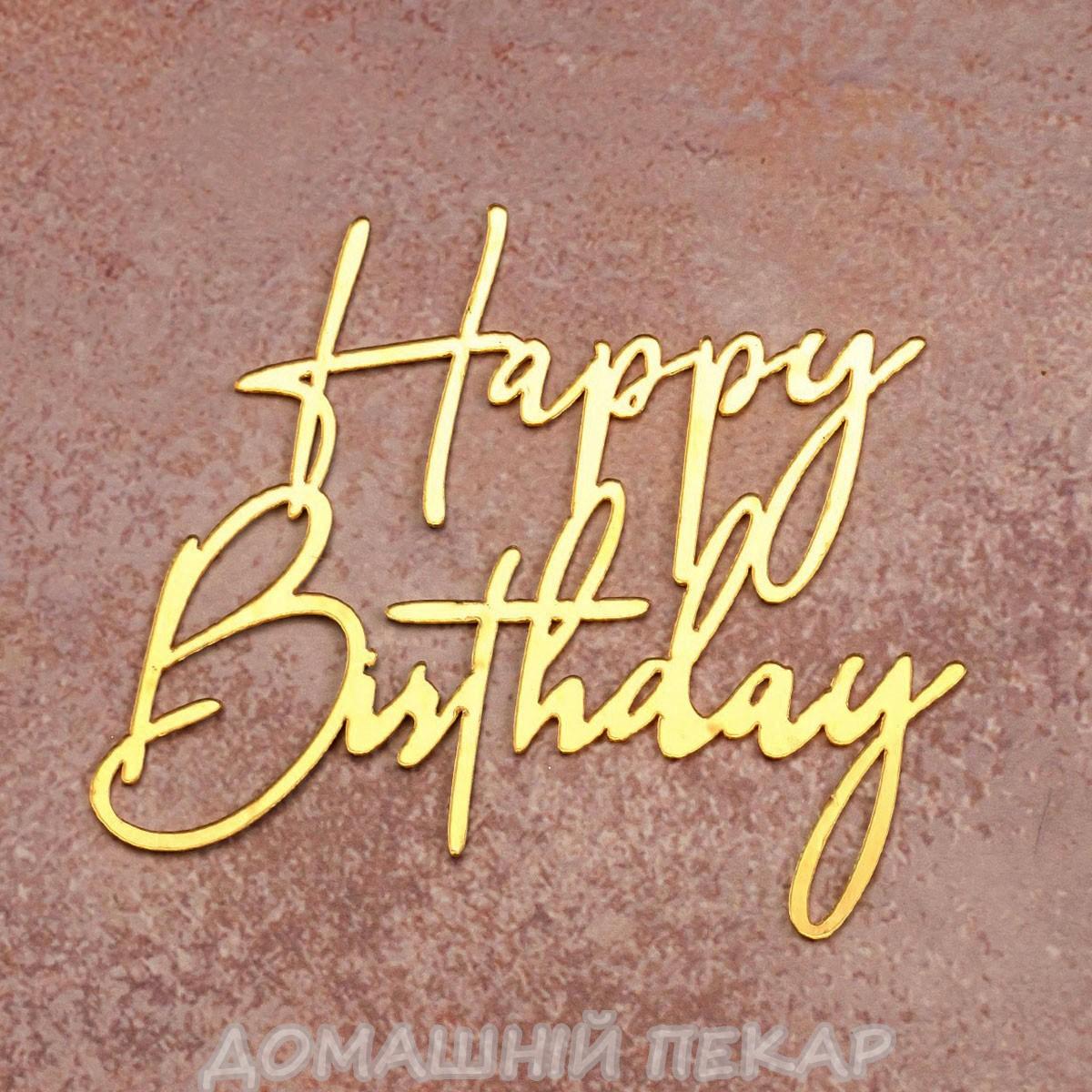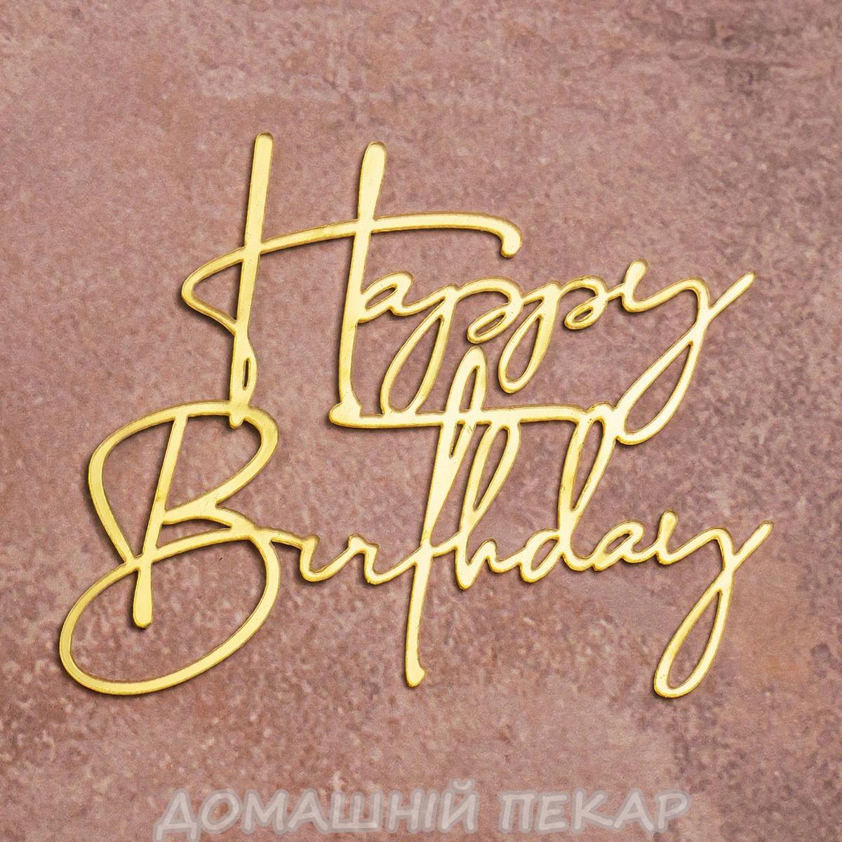 Топпер дзеркальний для торта бічний Happy Birthday золотий