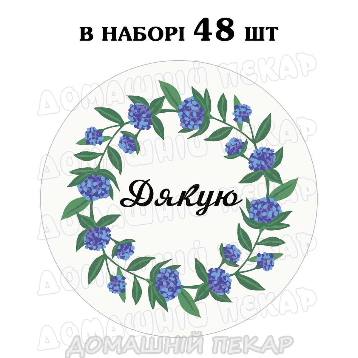 Наклейка Дякую волошковий віночок 3 см, аркуш 48 шт (N)