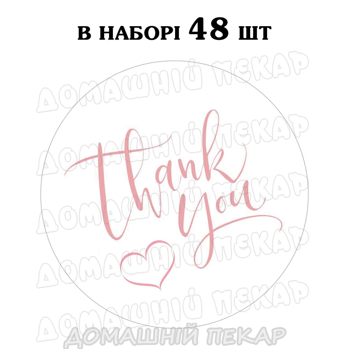 Наклейка Thank you 3 см, аркуш 48 шт (N)