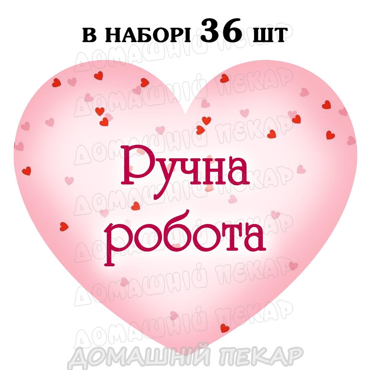 Наклейка серце рожеве Ручна Робота, аркуш 36 шт (N)