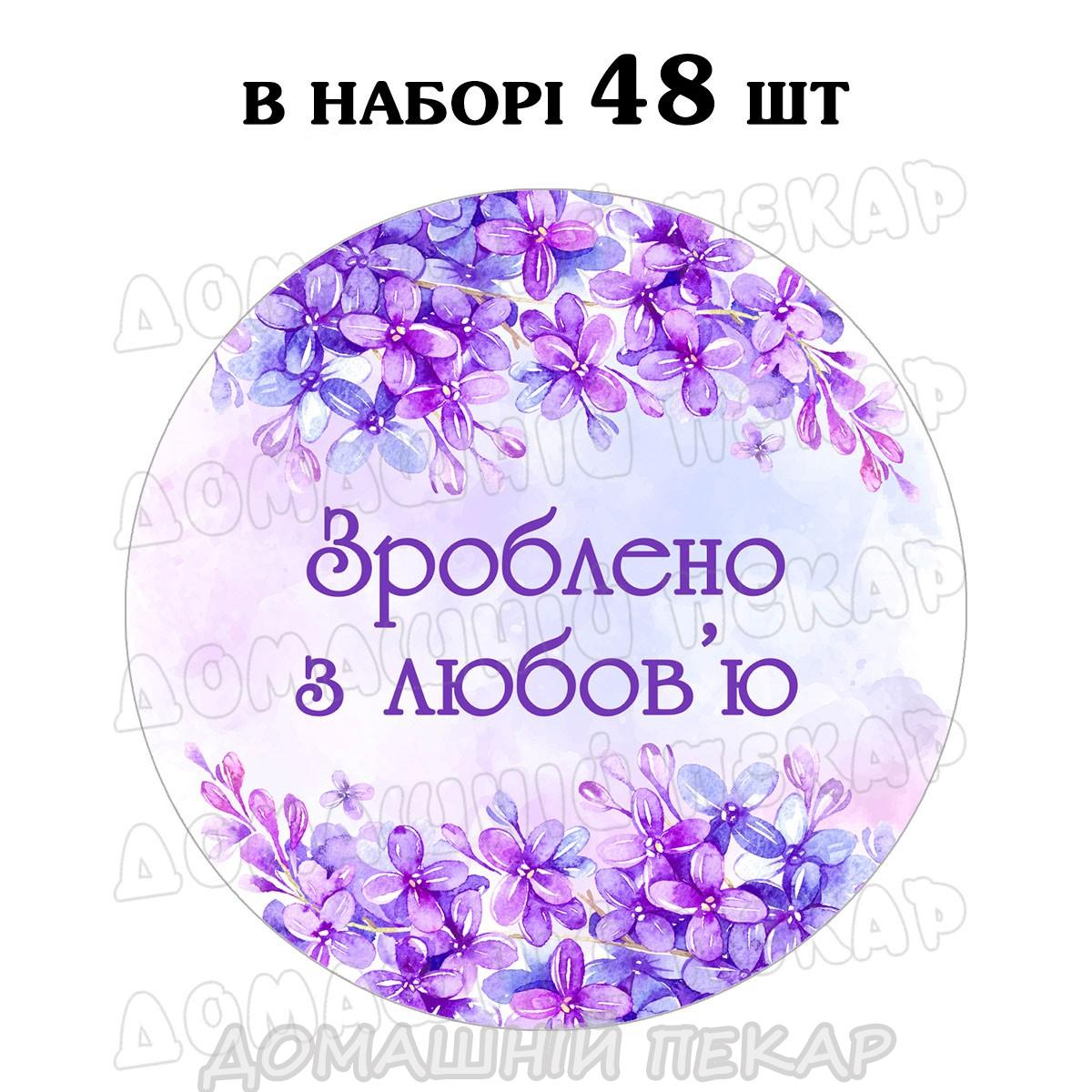 Наклейка Зроблено з любов'ю бузок 3 см, аркуш 48 шт (N)